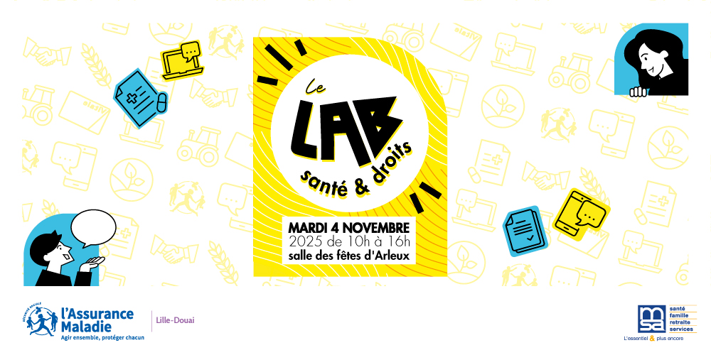 La MSA Nord-Pas de Calais et la CPAM Lille Douai ont le plaisir de vous inviter au LAB santé & droits, un événement gratuit et ouvert à tous, conçu pour simplifier l’accès aux droits sociaux, à la prévention santé et aux outils numériques.